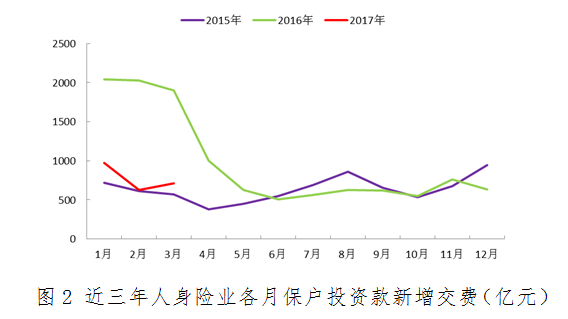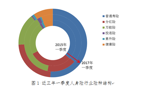 在行业倡导“保险姓保”的大背景下,2016年下半年起,人身险业的业务结构调整和转型持续推进,普通寿险和健康险均保持了较好发展态势,万能险业务大幅收缩,行业正逐渐向保障型业务回归。数据显示,2016年,寿险业务原保险保费收入17442.22亿元,同比增长31.72%;健康险业务原保险保费收入4042.50亿元,同比增长67.71%。2017年一季度,这一态势得以延续,同比增幅分别为37.50%和36.88%,原保费收入达到了11631.45亿元和1599.82亿元。此外,在多重因素影响下,人身险公司未计入保险合同核算的保户投资款和独立账户新增交费的增幅则由2016年的53.86%降至今年一季度的-61.79%,较好反映了转型的效果。