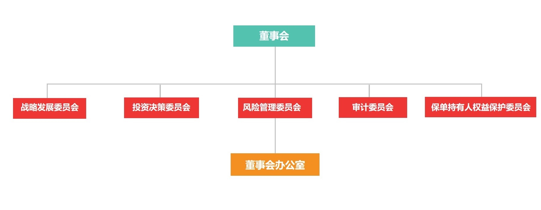 目前公司内部机构设置包括办公室(党委办公室、董事会办公室)、基金筹集与存款管理部、投资规划与投资管理部(安邦清算部)、风险处置部、股权管理部、风险监测部(保险消费者调查中心)、战略发展与国际合作部(《保险业风险观察》编辑部)、法务与内控合规部、财务会计部、审计部(党委巡察办)、信息化管理部、人力资源部(党委组织部)、纪委办公室、党建工作部(党委宣传部、工会办公室)共十四个部门。